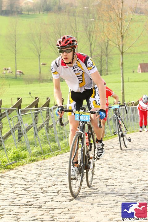 Na de Eikenberg vond ik dat de lastigste hellingen gedaan waren. Nu was het echter de beurt aan de kasseistroken: de Holleweg, Ruiterstraat, Mater-Kerkgate en de Jagerij. En dan was het nog niet gedaan, want er waren ook een paar niet benoemde, maar daarom niet minder beue kasseistroken. Het was voor mij echt wel uitkijken naar de Haaghoek, de laatste niet klimmende kasseien. Eerst moest echter de Molenberg nog bedwongen worden. Erg vlot ging dat toch niet meer, maar toch boven geraakt. Boven evventjes wat trager gereden om Eddy op adem te laten komen, kwestie van wat ‘uitgeruster’ te zijn voor de Haaghoek en Leberg.