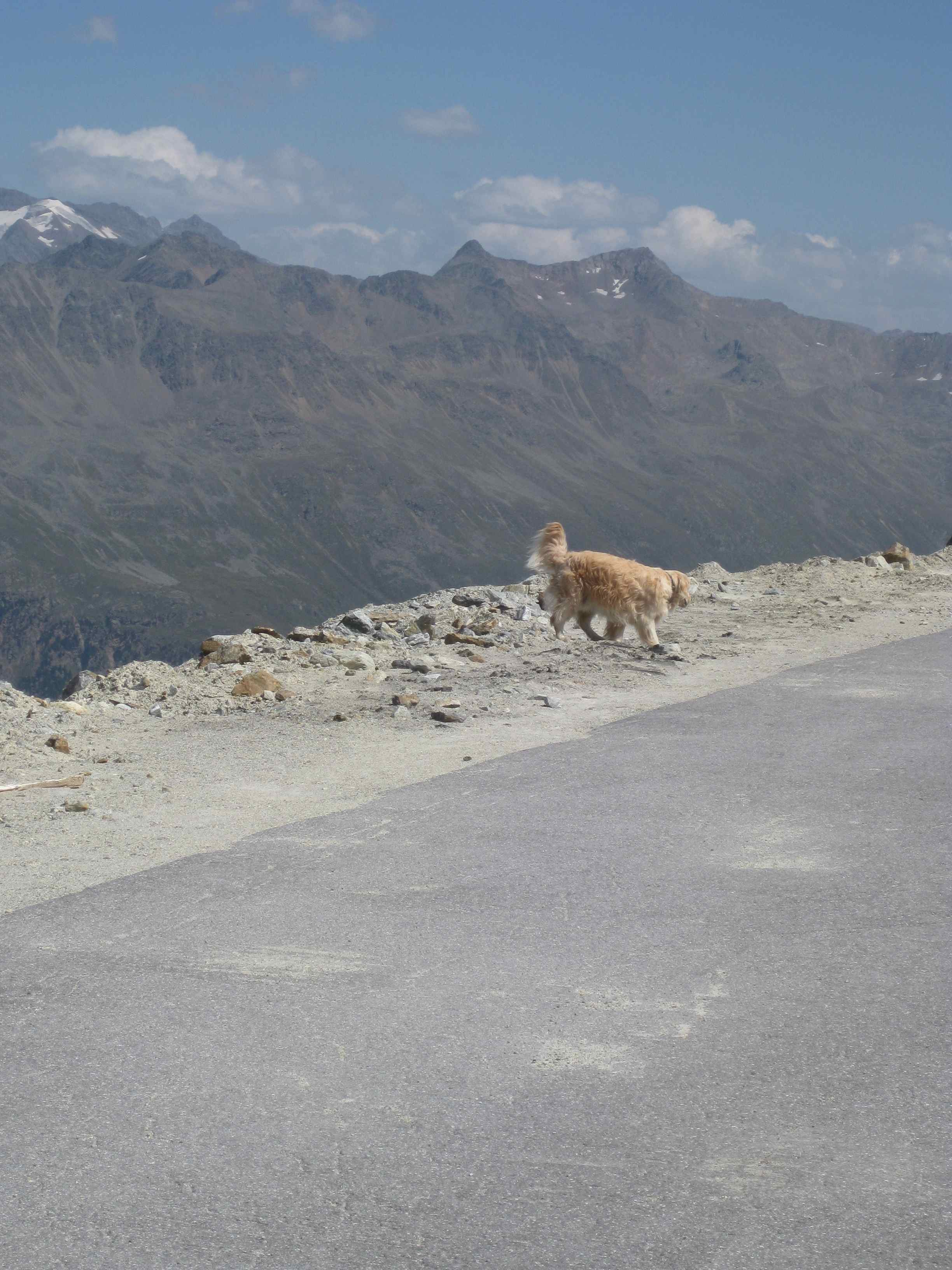 Dan nader je ook eindelijk haarspeldbochten. Maar ook deze schommelen rond de 10%. Een stijgingspercentage dat ongeveer aangehouden wordt tot de Rettenbachgetscher (er zijn 2 gletsjers). Daar was de wagen geparkeerd en was het de bedoeling wat te eten. Ter plekke iets eten was niet echt mogelijk (buiten een soepje). Dus namen we onze boterhammen maar.