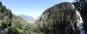 Nadat onze broodjes gesmeerd waren en de frigoox gevuld vertrokken we met de wagen richting Umhausen (waar de parking aan de waterval is). Vanaf Sölden is het constant afdalen, rustig rijden. We werden enkel opgeschrikt door ‘Kijk daar, een fiat Freemont, nen rooien. Zo’n mooie auto!’ uit de mond van Denis.