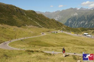In de laatste kilometers richting de top toch wel een aantal mensen langs de kant zien zitten. Ook de busjes voor de opgevers hadden hun werk. Blijkbaar toch velen die het niet meer zagen zitten op de flanken van de Timmelsjoch. Sommigen zagen het nog erg goed zitten, zo was er eentje verkleed als een smurf. Wel warm natuurlijk voor aan de start morgen.