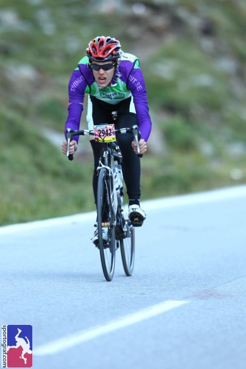 De Jaufenpass is de derde klim van de wedstrijd, eigenlijk de 2e zware. Hij is 15,5 kilometer lang. De voet ligt op 960m en de top op 2090 meter. Ik was erg rustig naar de voet gereden, het regenjasje weggestoken. De eerste meters van de klim voelde ik me erg super. Ik kon heel wat andere deelnemers voorbij steken en werd maar weinig ingehaald. Het ritme zat goed, ik had veel kracht in de benen. De percentages zijn niet zo extreem (rond de 8% meestal). Het is echter een zeer gelijkmatige klim, er zitten weinig snellere/makkelijkere stukken in. Na een kilometer of 12 klimmen begon ik te merken dat het niet zo vlot meer ging. De kracht begon uit de benen weg te gaan en ik begon weer last te krijgen van de hoogte en de koude. Het was net alsof ik een kleine hongerklop kreeg. Het klimmen ging veel moeilijker en ik werd opnieuw gepasseerd door een aantal atleten. Het lastige was dat de top nog wel eventjes verwijderd was (4 km). Net voor de top was er gelukkig een bevoorrading. Daar mijn tijd genomen om goed te eten en te drinken. De broodjes met smeerkaas smaakten erg goed, net zoals de Red Bull.