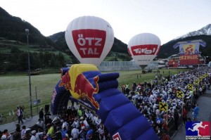 Het kleine klimmetje ging nog behoorlijk goed, vooral omdat de finish nu binnen handbereik lag. Na ‘t klimmetje nog even vol doorgereden met een paar andere tot aan Sölden zelf eigenlijk. Daar teruggeschakeld en op het gemak binnengereden om te genieten van de laatste kilometers. Zoals bij de profs stonden er de laatste kilometers borden, 1000 m, 500m… 200m. Nog rechts afdraaien, het brugje over en onder de boog van Red Bull. De Ötztaler zat erop!