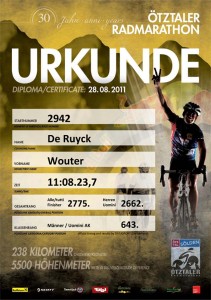 Is deze nu de lastigste die ik al gedaan heb? Ik denk het wel. Bij de grote 3 cyclosportieven (Marmotte, Dolomietenmarathon en Ötztaler) zou ik deze op 1 zetten, de Marmotte op 2 en de Dolomieten op 3. Deze laatste is iets anders dan de eerste 2 omdat er veel meer hellingen zijn, maar veel minder lang. De afstand is ook iets minder. Waarom lastiger dan de Marmotte, vooral door de afstand. Na 180 km moet je nog een een heel pak hoogtemeters doen. Zelf had ik nu iets minder last van de afstand (omdat het me ligt), maar diegene die vinden dat de Marmotte al een paar kilometers te lang is, zullen hier toch wel vloeken.